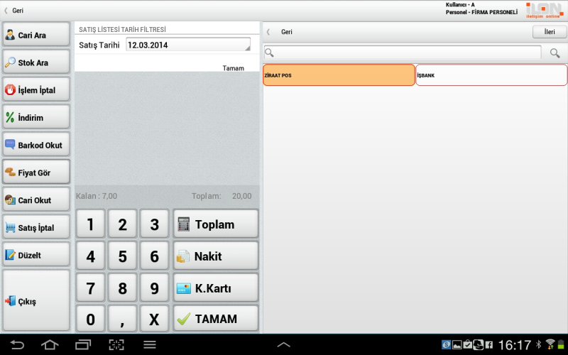 Ilon Mobil Satış Android Tablet Uygulaması Ekran Görüntüleri: